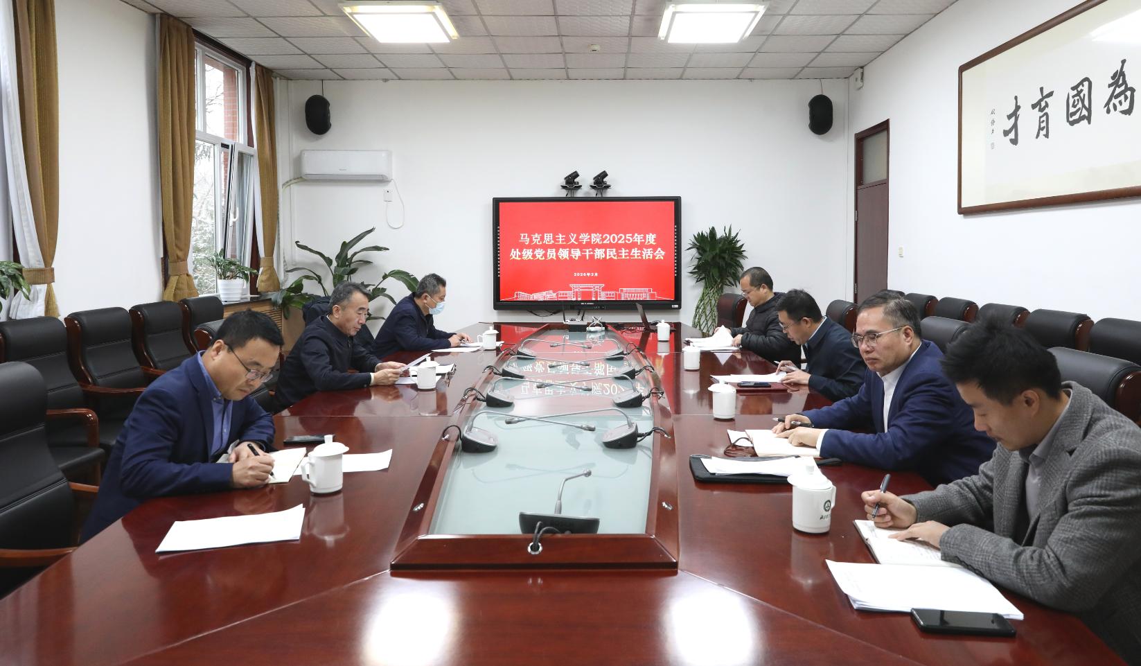 按照学校党委统一部署和要求,2026年2月27日上午,马克思主义学院组织召开2025年度处级党员领导干部民主生活会。学校党委书记赵锋到会指导并点评讲话,党委组织部常务副部长范小强、纪检监察办公室主任于兴海参加会议并提出指导意见。学院领导班子成员参加会议,会议由学院直属党支部书记高建伟主持。
