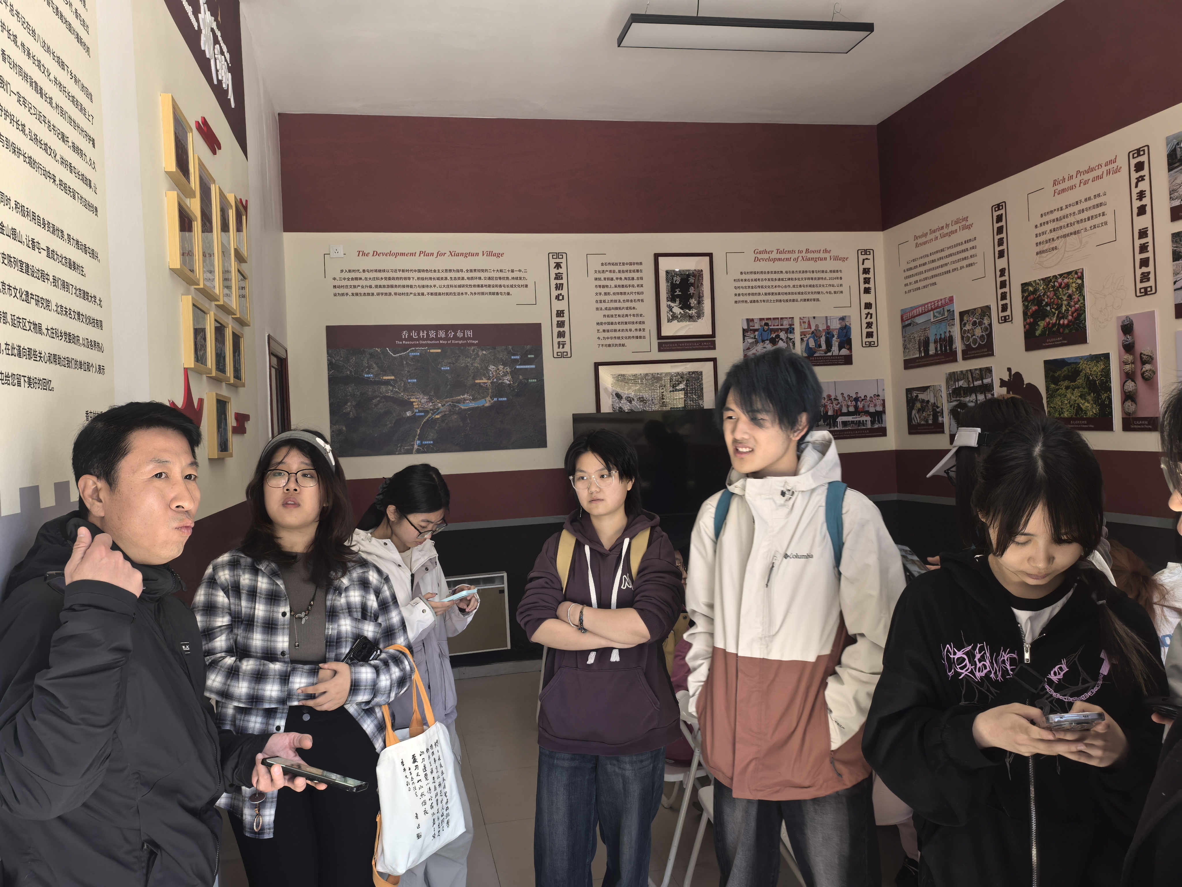 在香屯村,师生参观了村史展览馆,通过一幅幅老照片、一件件实物展品,详细了解了香屯村在抗日战争中的红色故事以及依托长城资源发展乡村旅游的历程。与此同时,通过与驻村产业——龙吟溪谷项目负责人对接沟通,深入了解了长城文化融入乡村文旅产业的发展现状。